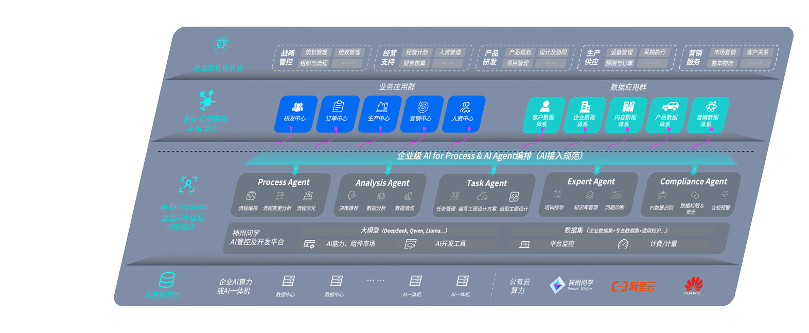 口袋牛店问学智车解决方案是一套基于AI技术的汽车行业智能化系统,,覆盖从底层算力到顶层AI应用的全栈方案。。。。方案由算力层、、、模型层和应用层组成:算力层,,,,方案支持多种一体机配置,,,具备云端灵活部署、、多云适配以及动态优化计算资源的能力;模型层,,,口袋牛店问学平台版提供了企业级AI应用一站式构建与管理平台,,支持基于后训练强化技术的汽车企业专属模型的训练、、、评测和运营;应用层,,口袋牛店问学DeepSeek版提供包括超级员工、、智能招采、、、智能营销、、、、智能客服、、、、AI for BI等一系列解决方案,,可助力汽车行业实现数字化转型,,让管理更智能、、、、响应更敏捷。。。。